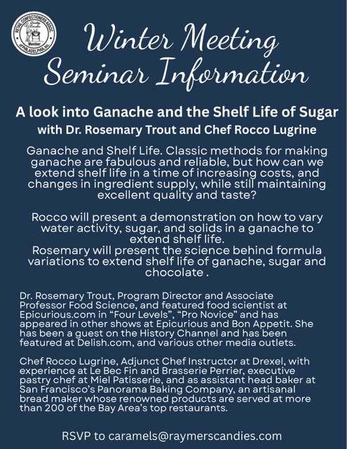 She actively serves on the board of directors for the Research Chefs Association for her third term and continues to serve on the executive committee of the Philadelphia section of the Institute of Food Technologists. She is a member of the American Chemical Society and has presented with her students at the national conference. She’s also a member of The American Association of Candy Technologists and Les Dames d’Escoffier. She is a certified ServSafe instructor and proctor and is an accredited instructor of HACCP.